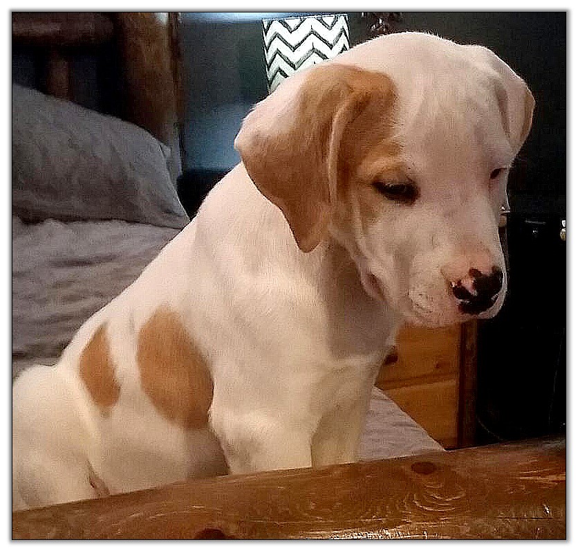 Shy, below, is the dam of this litter.